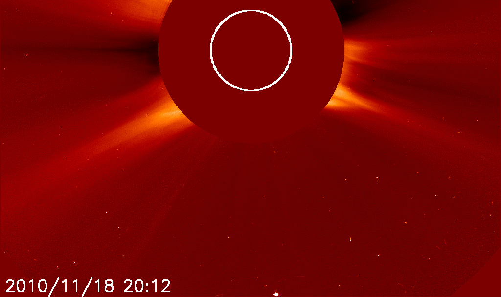 Yukarıda SOHO Uydusundan alınan LASCO C2 dedektöründen alınan görüntü.